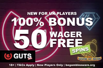 The Guts UK Casino’ya hoş geldiniz: 100 £’a kadar + 50 döndürme